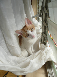 cutest cat ever. and may i also add, a proud mother who gave birth two. they didn't make it, but that's apparently normal for a young mother and her first litter. (and her last!) i think becoming a mother though pushed her out of the kitten stage. now she is just cuddly, calm, and sweet. she is definitely one of the best cats ever. (no offense to Newton or Sassie. they are of course among the best too)